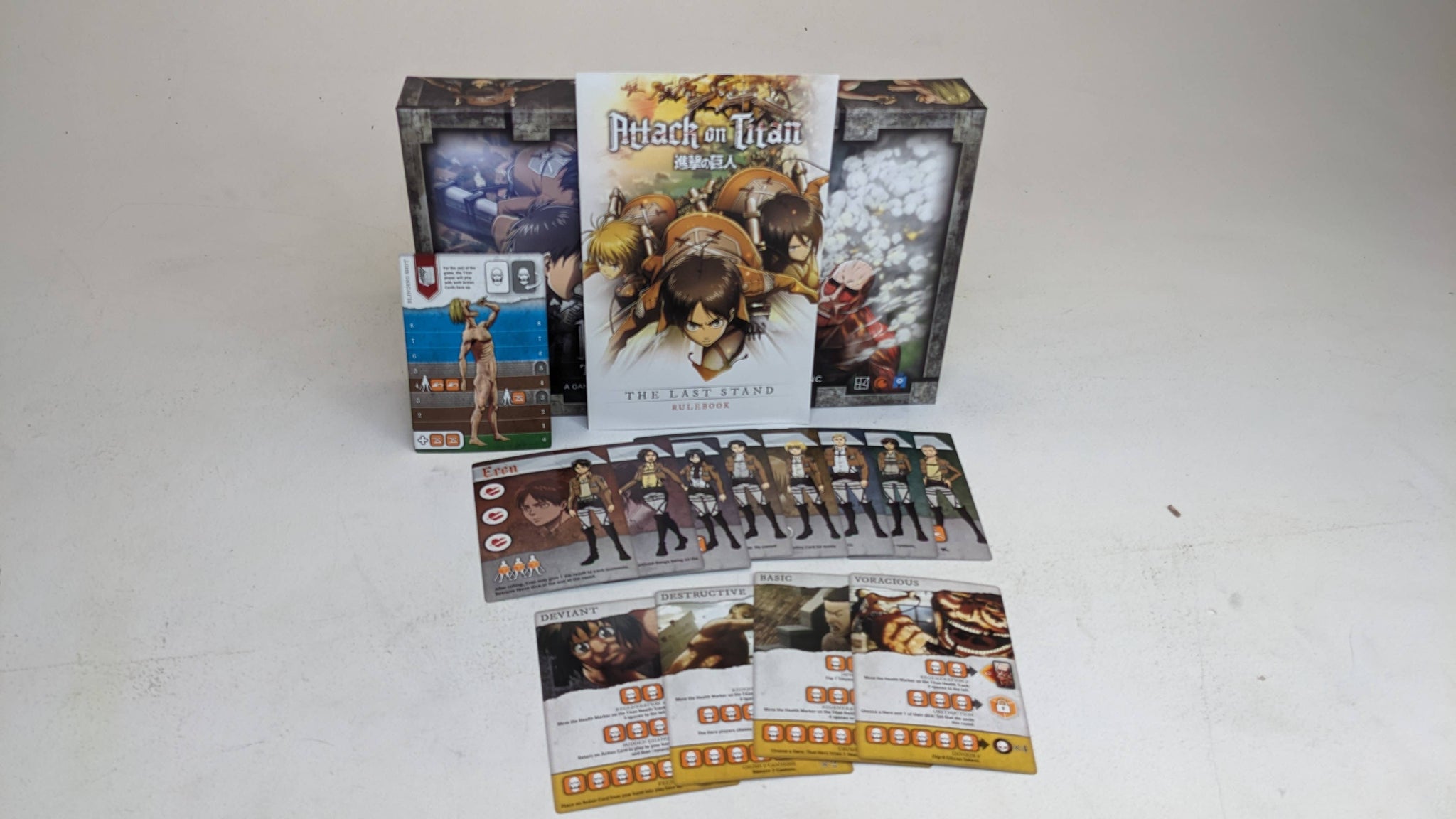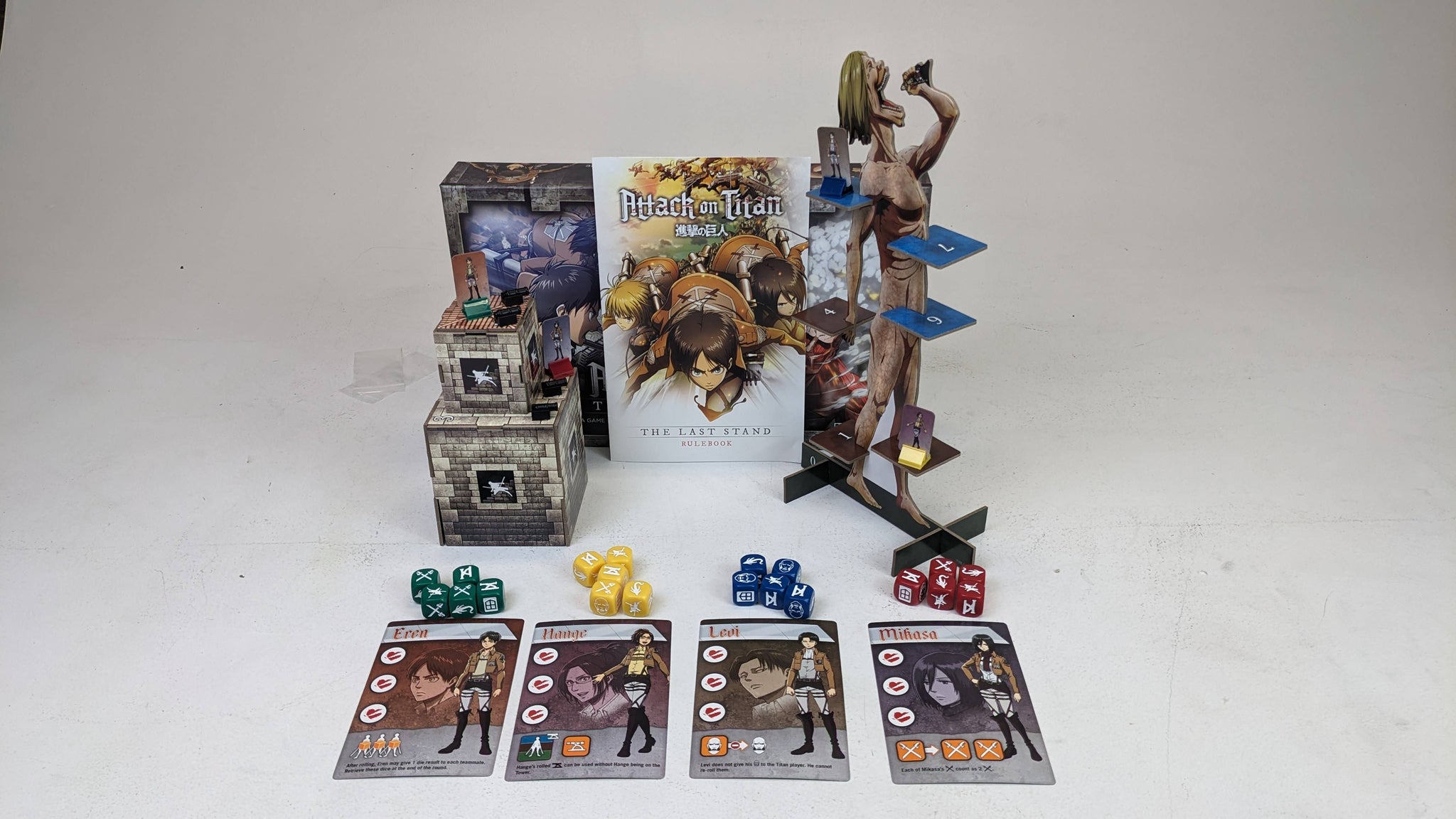 It's all come down to this. Titans have broken through Wall Maria and are heading for the supply depot in Trost. If the depot falls, all the resources needed to continue fighting off these monstrous aberrations will be destroyed and all hope for the last remnants of mankind will be lost. It's up to you and your team to fend off and fell the Titans before they can succeed! Are you ready for the last stand? In this anime board game you can play as your favorite Attack on Titan character. or as the Titan! Protect your very lives and the castle walls to save the day! Positioning is key! The Titan and the castle walls create a vertical playing surface. Move your character up and down as you see fit to avoid Attacks, or tactically position yourself to land a devastating blow on the Titan. Your goal is to weaken the Titan so that it's susceptible to a kill shot. But watch out! The Titan has lots of tricks waiting for you.
