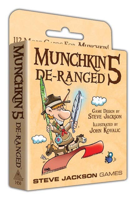 This is a 112-card EXPANSION for Munchkin. A Munchkin base game is needed in order to use these cards. De-Ranged has everything you love about Munchkin, including: * A new Class! Rangers can tame monsters and ride them! * Treasure! Track down the Philosopher's Scone, put Racing Stripes on your Steed, and fill your Canteen of Spleen with Carbonated Holy Water! * Monsters! Beware the Telemarketer, the Poultrygeist, and the Undead Clowns. * And imported monsters! That's right – this set includes unique monsters created by the European Munchkin publishers, available for the first time in English. Quake in fear at the Brothers Grimm and the Snerks! Or just kill them and take their stuff. Your choice. Munchkin 5 – De-Ranged. All the munchkin-ism of a prestige class, with none of that annoying roleplaying stuff. Munchkin 5 – De-Ranged is a supplement to Munchkin; you will need the original game to play.