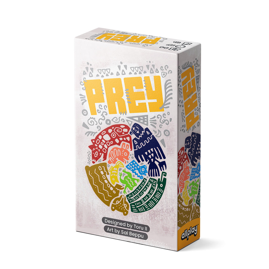 Prey is a 12-trick trick-taking game where 3-4 players play the first six tricks with one side of numbers (predators), then FLIP their cards over to play the final six (prey). You must follow suit if you can.