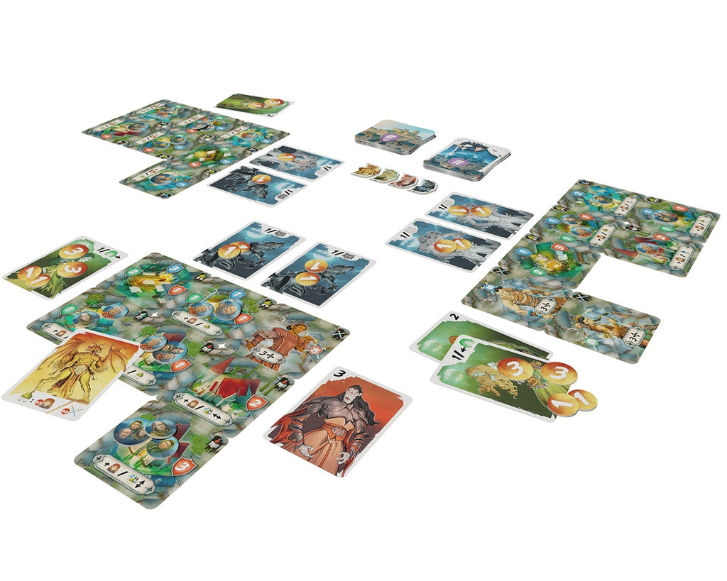 The game consists of two rounds, each with distinct phases. During the day, each player selects cards to build their village, considering the best combination of buildings, the optimal positioning and also recruit powerful heroes to protect their villagers. During the night, they receive Creature cards to split between themselves and their neighbors In the best of cases, they choose to keep creatures that their defense can handle while hitting the weakest spots in your neighbor's defenses! Finally, the Creatures attack and destroy the most exposed buildings and villagers. At the end, the player with the most surviving villagers and tamed creatures mastered is declared the winner!